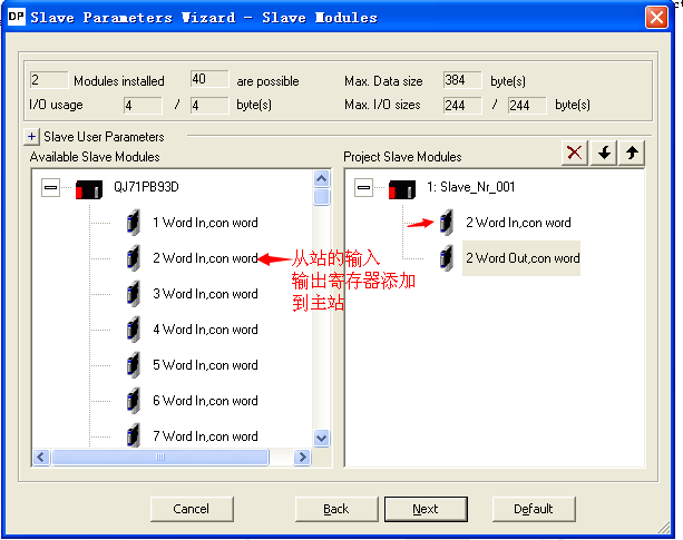 1、新建→2、選擇型號(hào)QJ71PB93D→3、下一步,如圖j,插槽位置、填寫從站站號(hào),(如圖k)填寫從站輸入輸出寄存器數(shù)。