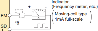 2.不帶-CHT的變頻器與之相應(yīng)的監(jiān)視輸出端子FM是脈沖輸出(圖二)