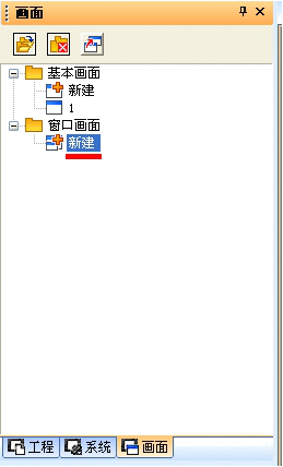 4、在畫面→窗口畫面中雙擊新建,進行新建窗口畫面。