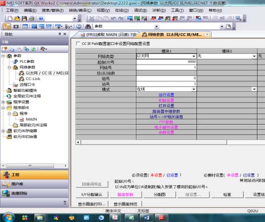 此三菱CPU有內(nèi)置以太網(wǎng)模塊,在Work2的PLC參數(shù)中設(shè)置