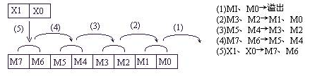 SFTLP M0 M20 K16 K4意思是:當(dāng)條件成立時(shí),將M3M2M1M0左移到M35M34M33M32M31M30M29M28M27M26M25M24M23M22M21M20中去,每次移4位,高位溢出。