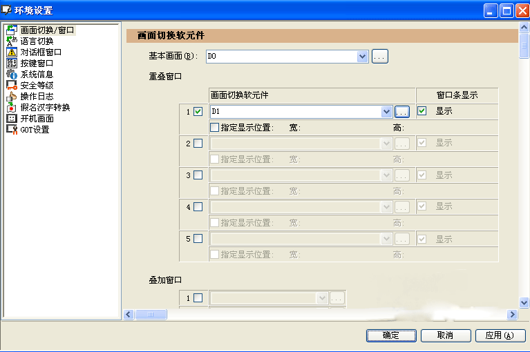點(diǎn)擊軟件上的“公共設(shè)置”——“GOT環(huán)境設(shè)置”——“畫(huà)面切換窗口”如圖所示: