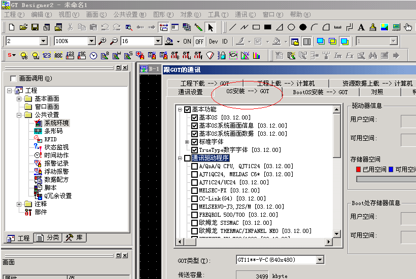 1.通過(guò)三菱觸摸屏軟件GT Designer2將BOOT OS內(nèi)容傳送到CF卡,使用CF卡安裝。