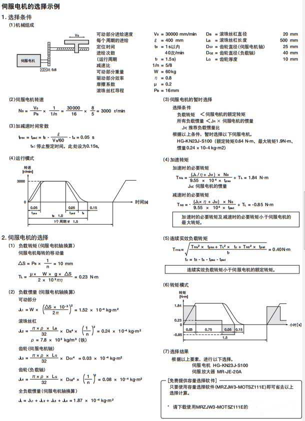 比如下圖是三菱伺服電機(jī)選擇示例,滿滿的一頁都是計(jì)算...