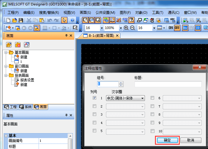 2.2.2 設(shè)置注釋組號(默認(rèn)為1),單擊[確認(rèn)]。